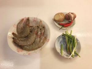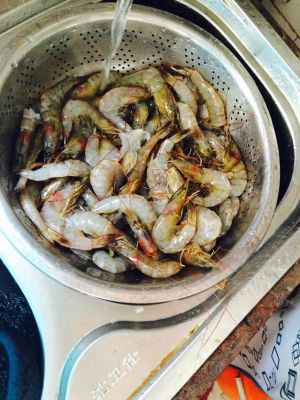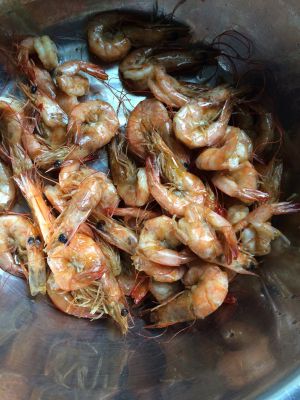 锅煮开水,将虾倒入,同时放二片姜,两勺黄酒,煮沸2分钟后捞起