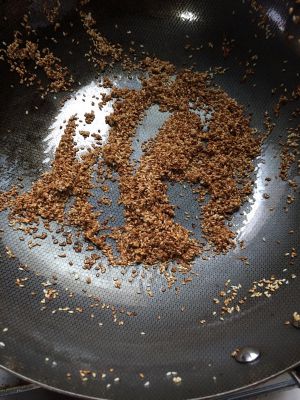 将锅热一下,什么都不放,加入芝麻炒至金黄色,出锅。