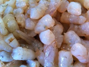 虾仁儿切成2厘米多的小段儿 也可以买冻好的小虾仁儿越小越好入味