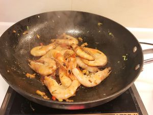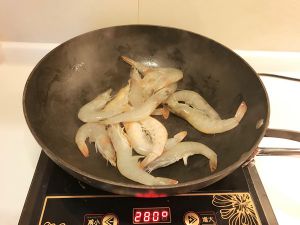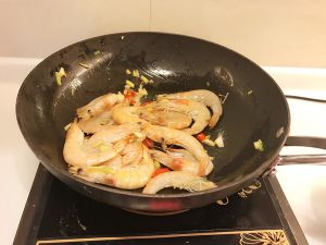 放入虾翻炒