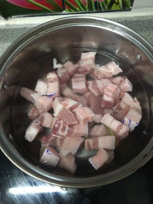 1.将五花肉放锅里罩一下,等水沸腾后把肉捞出。