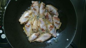 姜蒜切丝,鸡翅提前用淘米水浸泡一俩小时,酱油和白糖混合搅拌均匀,备用。锅内热油,倒入适量底油,烧热,葱姜爆锅。下入鸡翅根