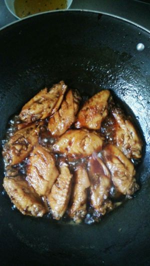 等可乐快没有得时候翻炒鸡翅即可!撒上葱