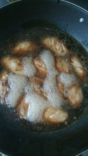 金黄了就可以加可乐(要是觉得油多了可以倒出来再加可乐)