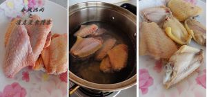 1.鸡翅改刀,冷水下锅,开锅后煮两分钟,将鸡翅捞出用冷水冲去血沫,控水备用。
