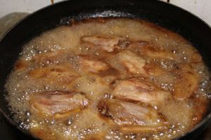 腌制好的鸡翅用温水冲掉酱料生姜蒜不要,沥干后在锅中倒入少许油,下锅煎止两面金黄。取出备用。
