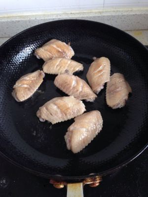 锅内放少许油烧热,放入鸡翅,煎至外皮两面泛黄。