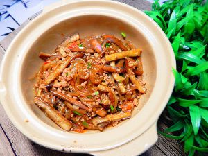 看似可以起锅时放入香菜 葱带味。炒几下即可起锅。