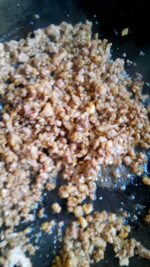 放肉末,再放入豆瓣酱(可以不放盐,豆瓣比较咸)