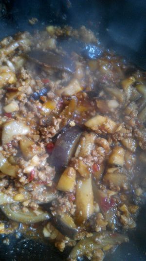 锅热添油,放入葱姜蒜爆香,➕豆瓣酱炒出红油后,放入肉馅,五香粉,煸炒出香味,最后放入炸好的茄子,翻炒均匀,加鸡精,味精,盐,白糖调味即可……