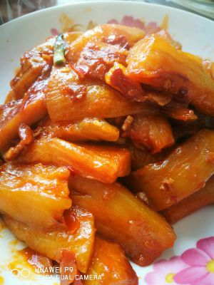 翻炒一分钟,加半碗清水闷三分钟,五分钟随意。加适量鸡精糖盐调味出锅。