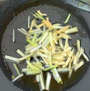 再次烧热锅,加适量的油,油热后,放入葱姜蒜丝爆香。