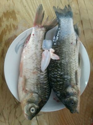 菜市场买活鲫鱼一条,现场宰杀收拾好回家简单冲洗下就可以了