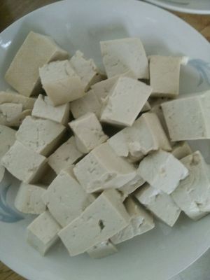 一块钱买回来的豆腐就够了,要把姜拍扁,豆腐切块,鱼煎5分钟就好了,之后放水放姜放豆腐,盖上盖子,把火开到大中火