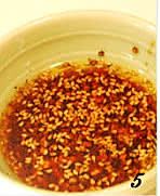 将盐、蒸鱼豉油、鸡精、辣椒油倒入麻酱并搅匀