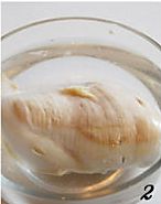 鸡肉熟后捞起,放入冰水中片刻,捞起沥干