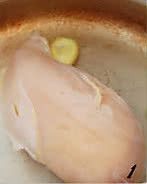 把鸡大胸整个丢到水里煮到全熟,用筷子插进较厚的地方看熟的程度。