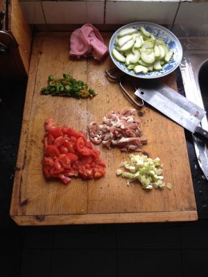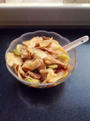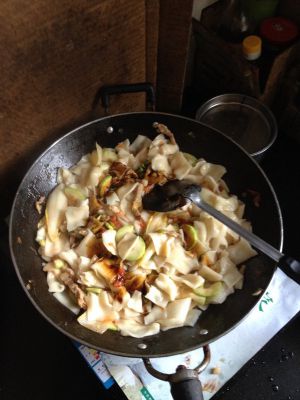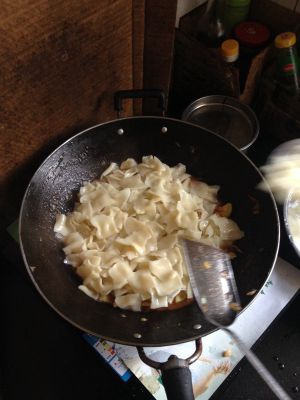 面饼切条揪面片煮熟后入凉水 前面忘了拍 这个已经待炒了…
