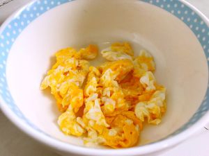 把鸡蛋炒好后,出锅装碗里,省得鸡蛋炒老了。