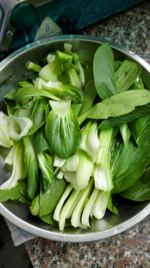 再把青菜洗干净切长条,备好