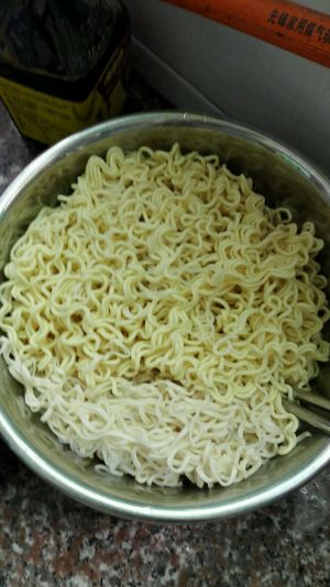 看图 面中间还是白色的,把面捞起放到冷水碗里