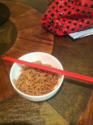 泡好的方便面过一边凉水然后把水倒掉,加少许橄榄油拌匀