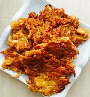 拿筷子夹一点放锅里摊成饼,稍微煎一分钟就熟啦。