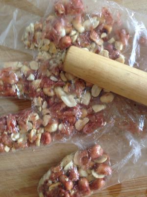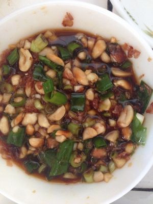 煮鸡肉的同时就可以作凉拌汁了~首先将花生米碾碎