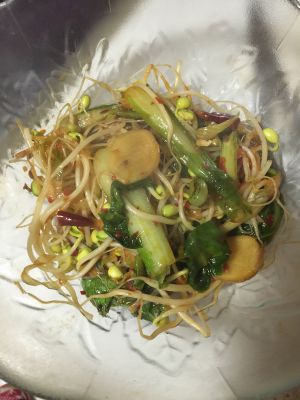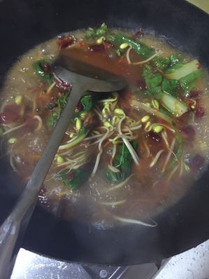 加入水或者高汤 烧开后先放黄豆芽煮一会 然后再放青菜 煮二十秒就行