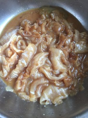 鱼切片,用清水洗两遍,加盐 料酒 生粉浆好备用。