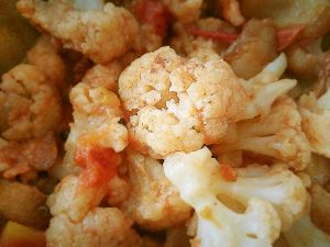 炒锅放油,五成热时候放入葱蒜放入菜花番茄酱翻炒至所有菜花都裹上番茄酱出锅