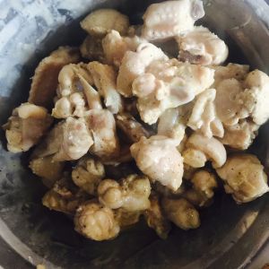 鸡脯肉,切小块用水抄一下备用