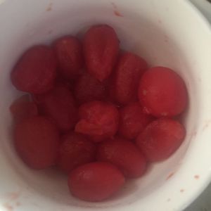 小番茄在开水中煮到破皮后 去皮