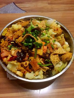 好了,一盆色香味具全的麻辣香锅做好了,比外边的干净,够味,实在是招呼亲朋好友的绝佳好菜。