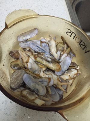 花蛤蜊买来后在清水中浸泡一小时,滴几滴油,让花蛤蜊自动开壳吐出泥沙。