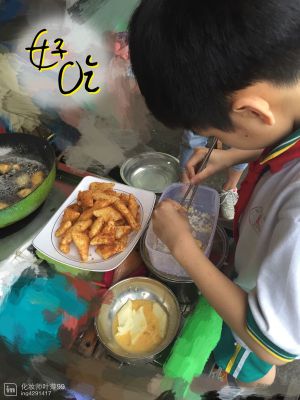 切好粘上鸡蛋液 再裹上面包糠 下锅炸