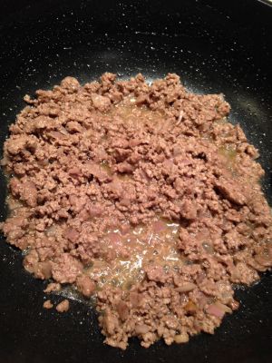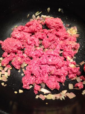 锅内放少许食用油,倒入牛肉馅,加少许盐调味,出锅前加入一小块黄油增加香味后捞出备用。