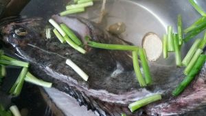 鱼洗干净,鱼背切口,用葱姜泡两个小时去腥
