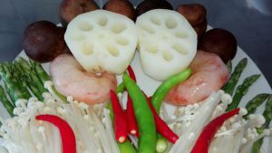 把添加的三和蔬菜切好备用