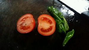 西红柿切丁炒出汁,放盐、醋、冰糖,放青椒,水淀粉勾芡,放肉,收汁出锅