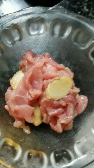 放姜,料酒、盐、生抽少许,腌渍5分钟
