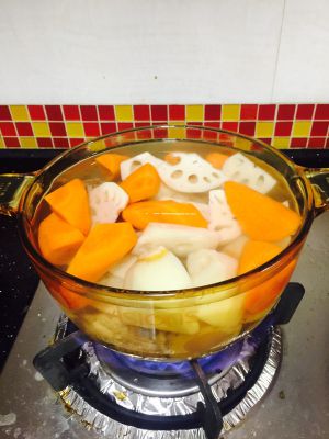 20分钟后加入玉米、莲藕继续炖煮15分钟。然后加入枸杞,根据个人口味加入适量盐、胡椒粉、鸡精再煮五分钟即可关火。