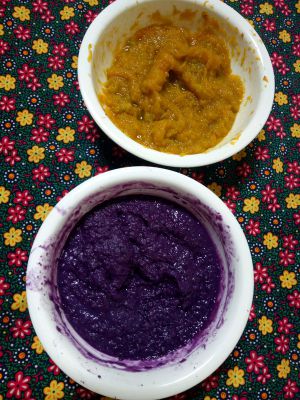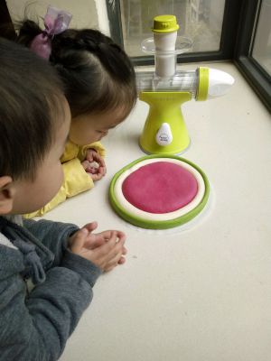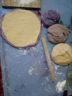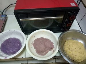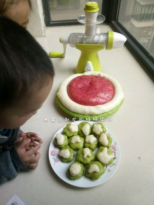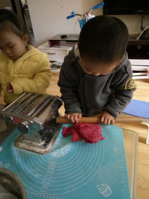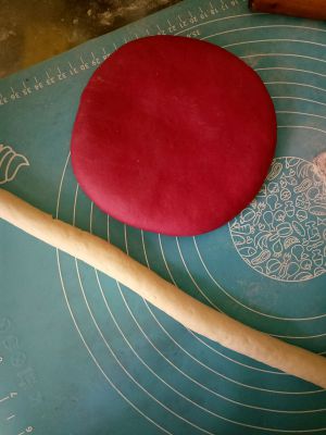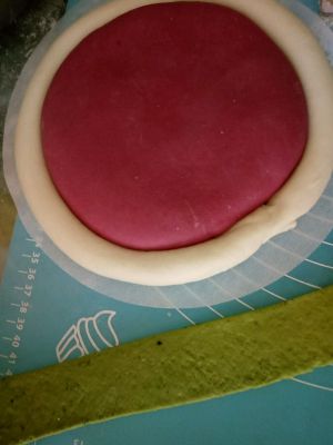 甜菜根汁和菠菜汁,分别揉面,还要揉一个白面团。