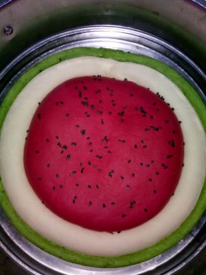上蒸锅,发酵20分钟。开火蒸熟。我的西瓜