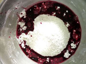 加入白糖、牛奶、酵母和泡打粉捣成泥