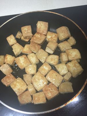 豆腐煎到每个面都焦黄