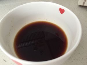 煎豆腐的时候准备糖醋汁,少量盐两大勺糖,一大勺番茄酱两大勺醋,少量的水,调匀。