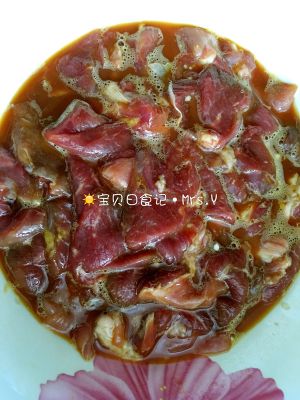 羊肉放盐、料酒、白胡椒粉、糖依照个人口味适量,腌制5分钟