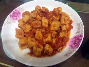 孩子不需要很多盐分,番茄酱本来就咸,盛出装盘放入一点香菜末即可。 酸甜可口,软嫩爽滑,营养丰富。孩子春天长个子的高峰期,多吃豆制品有益于发育。