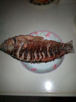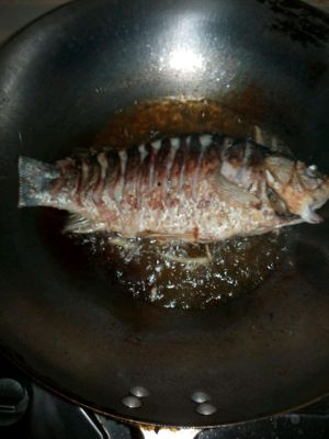 另起锅放少量油,放葱姜蒜末入锅爆香 放煎好的鱼,再把调好的调味汁倒入,加一碗热水没过鱼身